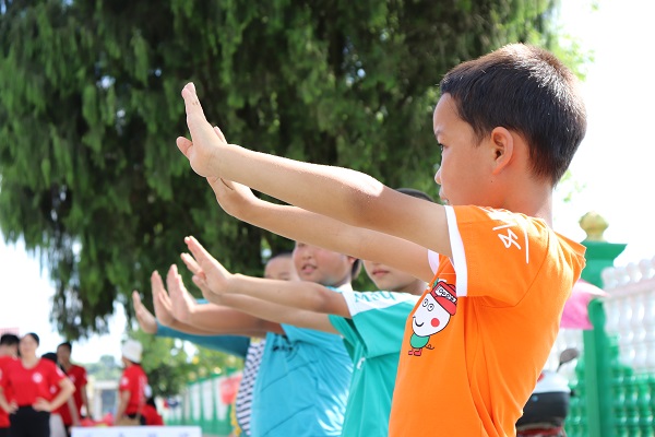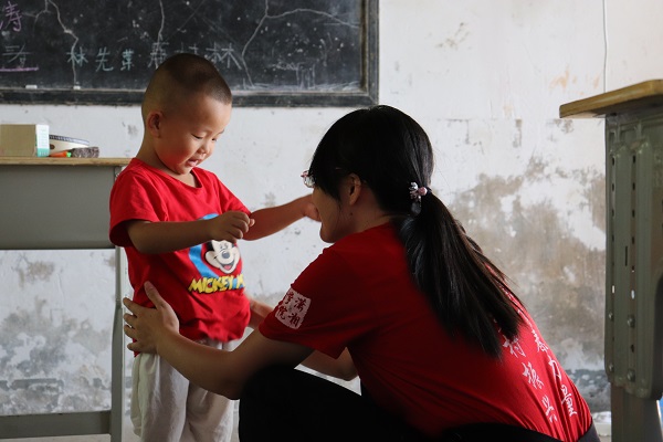 "一个一个梦飞出了天窗,一次一次想穿梭旧时光……"这正是本次三下乡团队成员江建梅教小朋友们唱的歌曲,教室里面不时地传出孩子们的欢声笑语。虽然怀化市的七月骄阳似火,但孩子们纯真眼睛中浓厚的求知欲,让所有志愿者们都为之动容,暂时忘记了天气的炎热。"由于条件有限,教室里没有风扇,所有孩子和老师全汗流浃背,但是所有人都在坚持,他们对知识的渴望完全超出了我们的想象,这些孩子们稚嫩的童声和热情洋溢的笑容让我们觉得这一切都是值得的。"此次三下乡团队成员王俣晴说道。